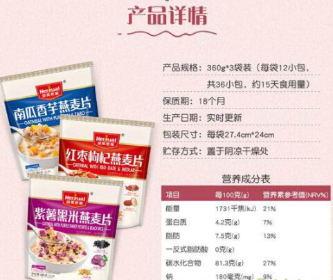 如图为燕麦片的产品规格图,以及产品的营养成分表等。